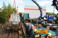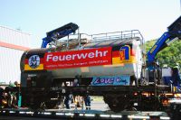 Dillenburg. Unser Übungszentrum in Frohnhausen hat Zuwachs bekommen. Ein zweiter Kesselwagen ermöglicht eine intensivere Ausbildung im Bereich Gefahrgut. Am Samstag (10. August) rollte der Waggon auf einem Tieflader vom Dillenburger Güterbahnhof auf das Gleis des Übungszentrums.