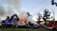 Am Sonntagnachmittag war das Feuer im Ortsteil Thalheim auf dem Reiterhof „Bärhöhl" ausgebrochen und von Freizeitsportlern bemerkt worden. Nach einem Brand vor acht Jahren hatte der Eigentümer Stallungen und Lagerhalle getrennt voneinander errichtet, so dass jetzt keine Tiere zu Schaden kamen. In dem brennenden Gebäude mit Blechverkleidung befanden sich neben ca. 500 Strohballen ein Mähdrescher, zwei Traktoren, zwei Heuballenpressen und weitere landwirtschaftliche Geräte.