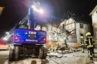 Angelburg-Lixfeld (Landkreis Marburg-Biedenkopf). Unser Team Einsatzstellensicherung hat in Lixfeld Abstützarbeiten an einem Wohnhaus überwacht. Nach einer Verpuffung zeigten sich Schäden an der Außenfassade des Gebäudes.
