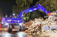 Daaden (Landkreis Altenkirchen). Am Donnerstagnachmittag (25. September) erschütterte eine Explosion den Ortskern von Daaden und zerstörte ein Wohn- und Geschäftshaus. Es gab acht Verletzte, unter den Trümmern aber keine vermissten Personen. Für die Aufräumarbeiten forderte die Einsatzleitung unseren Bagger an. Die Unterstützung der Feuerwehr dauerte bis ca.4 Uhr Freitagnacht.